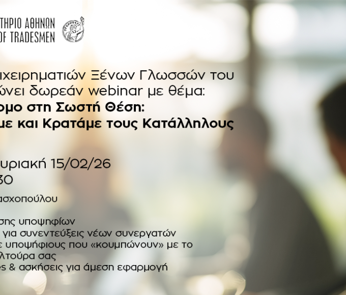 Ημερομηνία και ώρες διεξαγωγής: Παρασκευή 08/09/2023 από τις 10:30 π.μ. (ώρα έναρξης υποδοχής) έως τις 13:00 μ.μ. (ώρα λήξης)