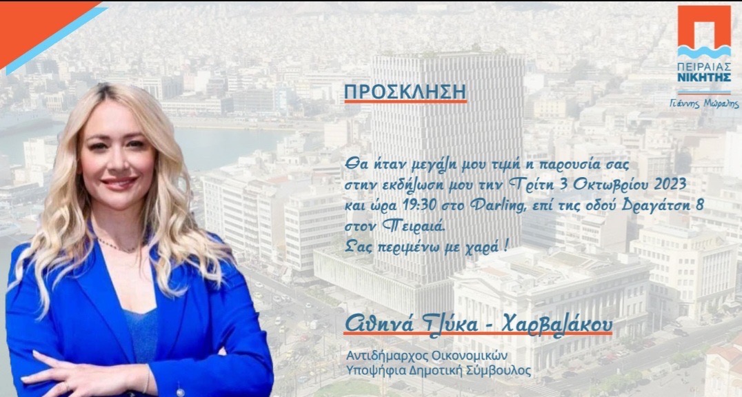 “Θα ήταν μεγάλη μου χαρά να με τιμησετε με την παρουσία σας, για να μιλήσουμε για τον απολογισμό έργου των 9 ετών και για όλα όσα πρόκειται να γίνουν για τον Πειραιά μας!!”