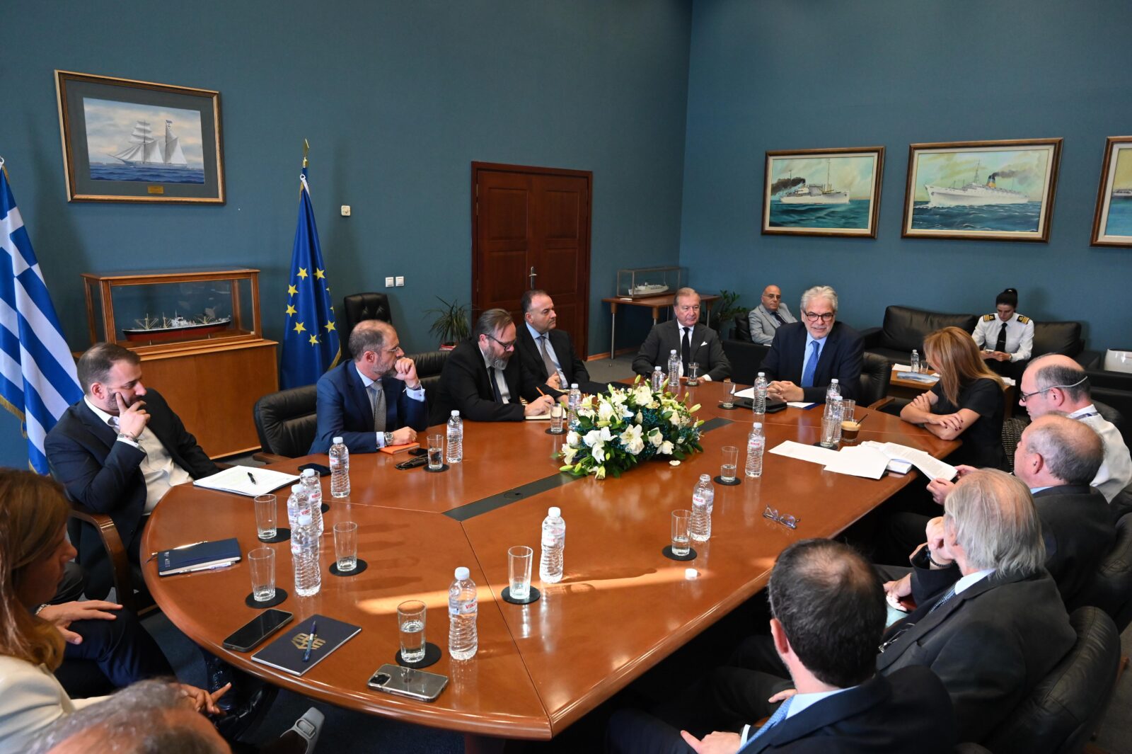 Την Ένωση Ελλήνων Εφοπλιστών εκπροσώπησαν η Πρόεδρός της Μελίνα Τραυλού, οι Αντιπρόεδροι Μιχαήλ Χανδρής και Αντώνιος Λαιμός, οι Γραμματείς Δημήτριος Φαφαλιός και Νικόλαος Βενιάμης, ο Ταμίας Ιωάννης Ξυλάς, το μέλος του Δ.Σ. της ΕΕΕ Ιωάννης Λύρας, η Γενική Διευθύντρια της Ένωσης Κατερίνα Πέππα και ο Νομικός Σύμβουλος Κωνσταντίνος Αντωνόπουλος.
