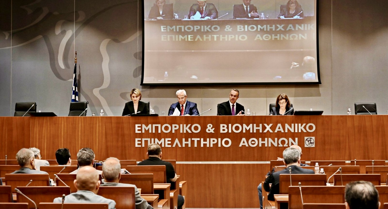 Με επιτυχία ολοκληρώθηκαν την Παρασκευή 15 Δεκεμβρίου 2023 στην αίθουσα ‘’Ερμής‘’ του Εμπορικού & Βιομηχανικού Επιμελητηρίου Αθηνών (ΕΒΕΑ) οι συναντήσεις του Διοικητικού Συμβουλίου και της Ετήσιας Τακτικής Γενικής Συνέλευσης του Ε.Ε.ΣΥ.Μ με τις τιμητικές συμμετοχές του κ. Χρήστου Σταϊκούρα, Υπουργού Υποδομών και Μεταφορών, της κας Χριστίνας Αλεξοπούλου, Υφυπουργού Μεταφορών, της κας Νιόβης Ρίγκου, Επικεφαλής της Αντιπροσωπείας της Ευρωπαϊκής Επιτροπής στην Ελλάδα , και του κ. Γεώργιου Τζαμαλή, Αρμόδιου για την Πράσινη Συμφωνία και το ‘’Fit for 55’’ της Γενικής Διεύθυνσης Μεταφορών (DG MOVE) της Ευρωπαϊκής Επιτροπής. Κύρια θέματα συζήτησης, παρουσίαση των ενεργειών Ε.Ε.ΣΥ.Μ 2023 και προγραμματισμός μελλοντικών δράσεων καθώς και παρουσίαση και συζήτηση των σημαντικών προκλήσεων στην αγορά μεταφορών από την εφαρμογή της Ευρωπαϊκής Πράσινης Συμφωνίας (European Green Deal) της Ευρωπαϊκής Ένωσης.