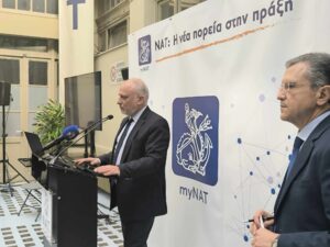 Την νέα πορεία του Ναυτικού Απομαχικού Ταμείου (ΝΑΤ) στην πράξη αποτυπώνει η πρώτη υλοποίηση τηςεφαρμογής myNAT, με την απεικόνιση της θαλάσσιας υπηρεσίαςτων ναυτικών, που παρουσιάστηκε σε πανηγυρική εκδήλωση στο ανακαινισμένο Αίθριο του Μεγάρου του ΝΑΤ, στον Πειραιά, εγκαινιάζοντας μια νέα εποχή για τις υπηρεσίες που προσφέρει στον Έλληνα ναυτικόο αρχαιότερος ασφαλιστικός φορέας της Ευρώπης.