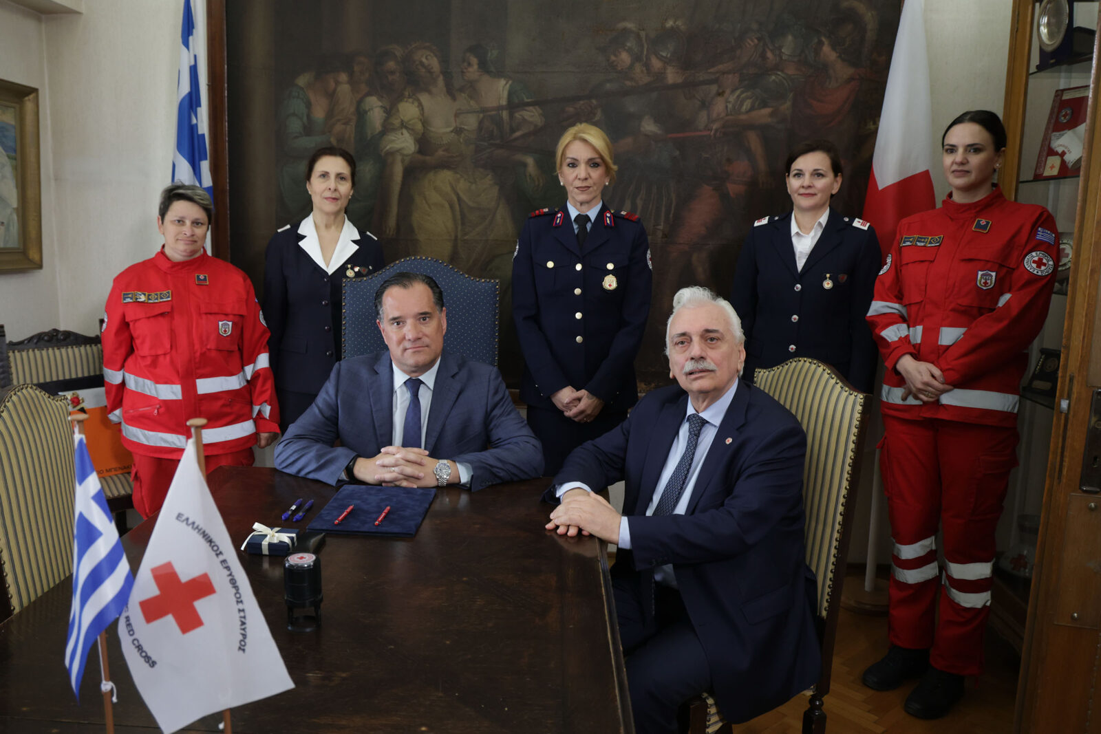 Ειδικότερα, στην τελετή, η οποία πραγματοποιήθηκε σε εξαιρετικά εγκάρδιο κλίμα στα κεντρικά γραφεία του Ε.Ε.Σ, ο Υπουργός Υγείας κ. Άδωνις Γεωργιάδης και ο Πρόεδρος του Ελληνικού Ερυθρού Σταυρού, Dr. Αντώνιος Αυγερινός, υπέγραψαν το συμφωνηθέν μνημόνιο. Το εν λόγω μνημόνιο συνεργασίας αντικατοπτρίζει τις υφιστάμενες άριστες σχέσεις μεταξύ του Υπουργείου Υγείας και του Ελληνικού Ερυθρού Σταυρού και την επιθυμία για περαιτέρω ενδυνάμωση των από κοινού δραστηριοτήτων σε θέματα που άπτονται του τομέα της Υγείας.