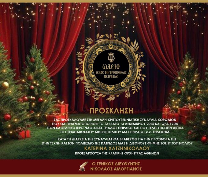 Ωδείο της Ιεράς Μητροπόλεως Πειραιώς: Συναυλία Χορωδιών «ΧΡΙΣΤΟΥΓΕΝΝΙΑΤΙΚΟ ΑΝΤΑΜΩΜΑ»