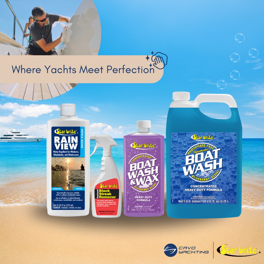 Give your yacht the care it deserves with Starbrite cleaning products, now at Cavo Yachting. These effective cleaners are designed to be tough on dirt and grime while being gentle on your yacht’s surfaces and the environment. From high-foaming Boat Wash to non-abrasive Deck Cleaner and shine-restoring Hull Cleaner, Starbrite has everything you need to keep your vessel in top condition.