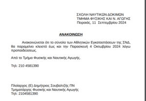 Home AGENDA ΣΧΟΛΗ ΝΑΥΤΙΚΩΝ ΔΟΚΙΜΩΝ: Αθλητικές εγκαταστάσεις- Έναρξη στις 5 Οκτωβρίου