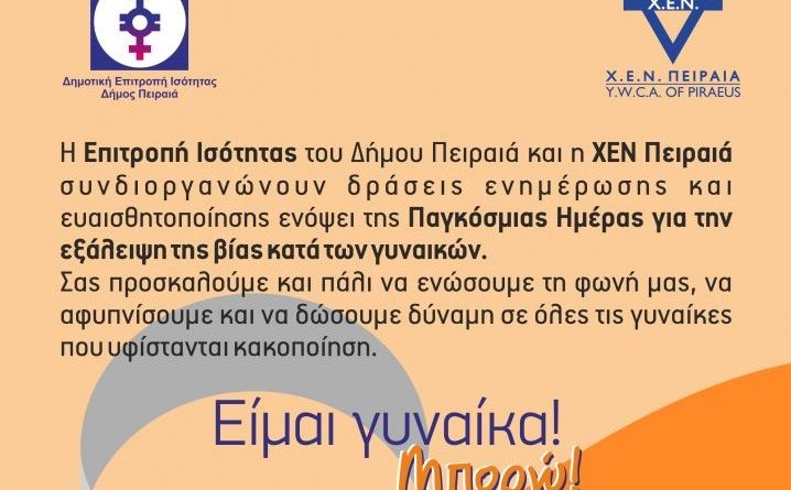 Δράση ενημέρωσης & ευαισθητοποίησης για την εξάλειψη της βίας κατά των γυναικών από την Επιτροπή Ισότητας Δ. Πειραιά και τη ΧΕΝ Πειραιά