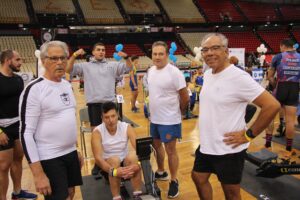 Αγωνιζόμενους και θεατές, τόσο αυτούς που είχαν φυσική παρουσία στο ΣΕΦ αλλά και όσους παρακολουθήσαν το πρωτάθλημα μέσω από το live stream της Ομοσπονδίας για περισσότερες από 7 ώρες χαιρέτησε ο νέος πρόεδρος της ΕΚΟΦΝΣ κ. Βασίλης Πολύμερος μαζί με τον πρόεδρο του Ομίλου Ερετών και πρώην πρόεδρο της ΕΚΟΦΝΣ κ. Γιάννη Καρρά, με τα Διοικητικά