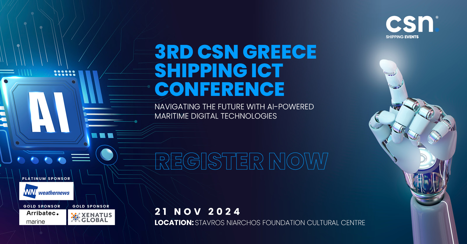 The 3rd CSN Greece Shipping ICT Conference “Navigating the Future with AI-Powered Maritime Digital Technologies”, scheduled for 21 November 2024 at the Stavros Niarchos Foundation Cultural Centre, promises to be a groundbreaking event that will explore the transformative power of AI-powered maritime digital technologies.