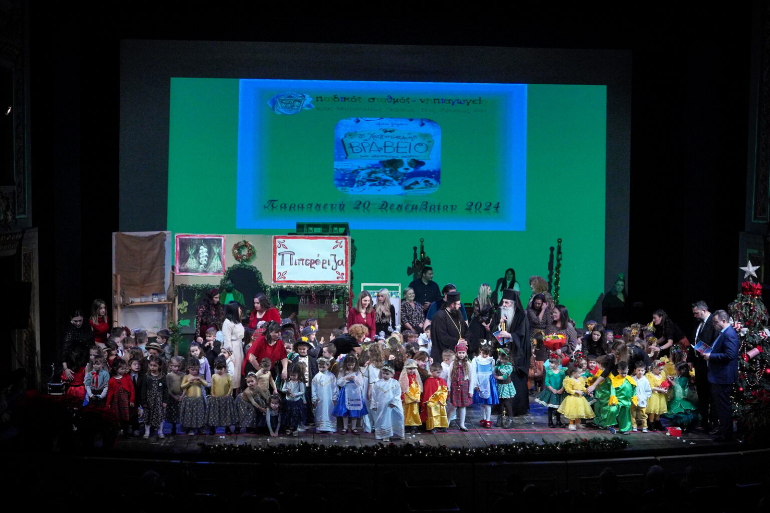 Παρουσία του Σεβασμιωτάτου Μητροπολίτου Πειραιώς κ. Σεραφείμ οι μικροί μαθητές, με την καθοδήγηση των υπευθύνων, παρουσίασαν με εξαιρετική επιτυχία στο κατάμεστο από κόσμο Δημοτικό Θέατρο της πόλης, χθες Παρασκευή 20 Δεκεμβρίου 2024, το έργο «Το Χριστουγεννιάτικο βραβείο ενός αδέσποτου σκύλου», της συγγραφέως Άννας Ιακώβου, η οποία έκανε και τη θεατρική διασκευή του βιβλίου της.