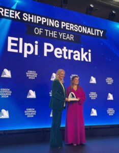 Personalities winning individual awards were led by Womens’ International Shipping & Trading Association President Elpi Petraki. She was named ‘Greek Shipping Personality of the Year’ for 2024, shortly after accepting the International Personality of the Year Award on behalf of its winner, International Maritime Organization (IMO) Secretary General Arsenio Dominguez. Mr Dominguez was unable to attend in person due to a busy week for the IMO in London that centred on the organisation’s Maritime Safety Committee meeting.