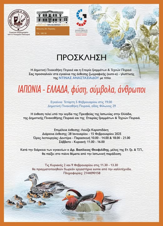 Δημοτική Πινακοθήκη Πειραιά: Έκθεση «ΙΑΠΩΝΙΑ – ΕΛΛΑΔΑ, ΦΥΣΗ, ΣΥΜΒΟΛΑ, ΑΝΘΡΩΠΟΙ»
