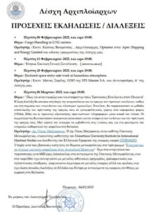 Η Λέσχη Αρχιπλοιάρχων Πειραιά διοργανώνει διάλεξη με θέμα: “Cargo handling in LNG carriers “με ομιλητή τον καπετάν Κώστα Βακρατσά την Πέμπτη 6 Φεβρουαρίου 2025, στα γραφεία της στην οδό Φίλωνος 86 και ώρα 7 απογευματινή. Είσοδος ελεύθερη
