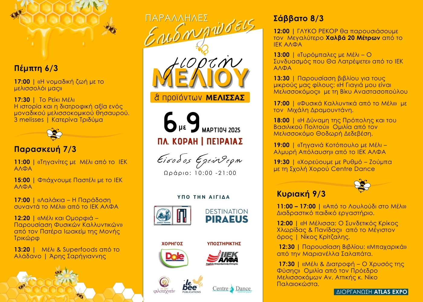 Γιορτή Μελιού Πειραιά 2025 – Ετοιμαστείτε για ένα γλυκό ταξίδι! ![]()