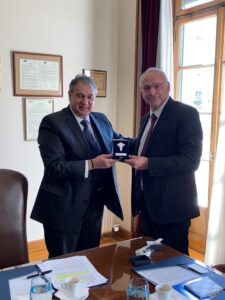 Στο πλαίσιο της συνάντησης ο Πρόεδρος του Επιμελητηρίου επέδωσε στον Πρέσβη του Ισραήλ υπόμνημα προτάσεων του Επιμελητηρίου που στοχεύουν στην ανάπτυξη των εν λόγω επιχειρηματικών δραστηριοτήτων. Επιπλέον, ο κ. Κορκίδης, πρότεινε, το προσεχές διάστημα, την υπογραφή Μνημονίου Συνεργασίας μεταξύ των Επιμελητηριακών φορέων των δύο πόλεων-λιμένων του Πειραιά και της Χάιφας.