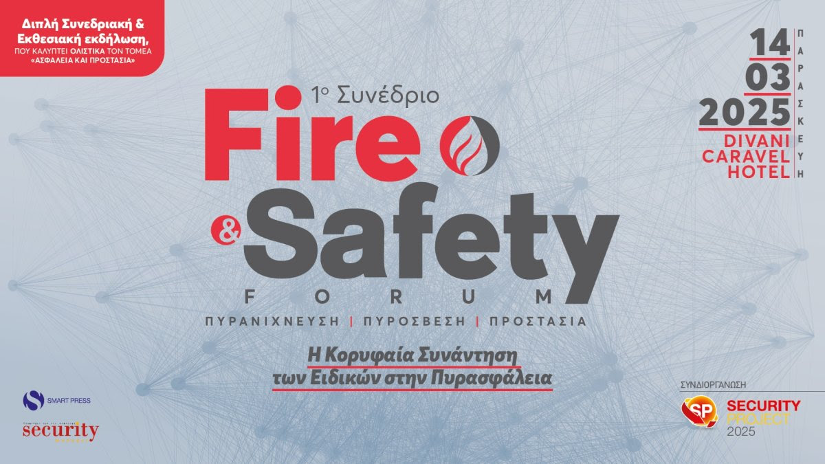 Το 1ο Fire & Safety Forum – που θα πραγματοποιηθεί στις 14 Μαρτίου 2025 στο ξενοδοχείο Divani Caravel Athens, παράλληλα με το 12ο Συνέδριο Security Project – έχει στόχο να συνεισφέρει καθοριστικά στην ενημέρωση των επαγγελματιών που είναι υπεύθυνοι για τα ζητήματα πυρασφάλειας και προστασίας εργαζομένων, αναδεικνύοντας τις νεότερες τάσεις και λύσεις στους τομείς πυρανίχνευσης, πυρόσβεσης και τεχνικής ασφάλειας στους χώρους εργασίας και παράλληλα να αποτυπώσει όλες τις εξελίξεις στα θέματα νομοθεσιών και πολιτικών για τα κρίσιμα ζητήματα της πυρασφάλειας.
