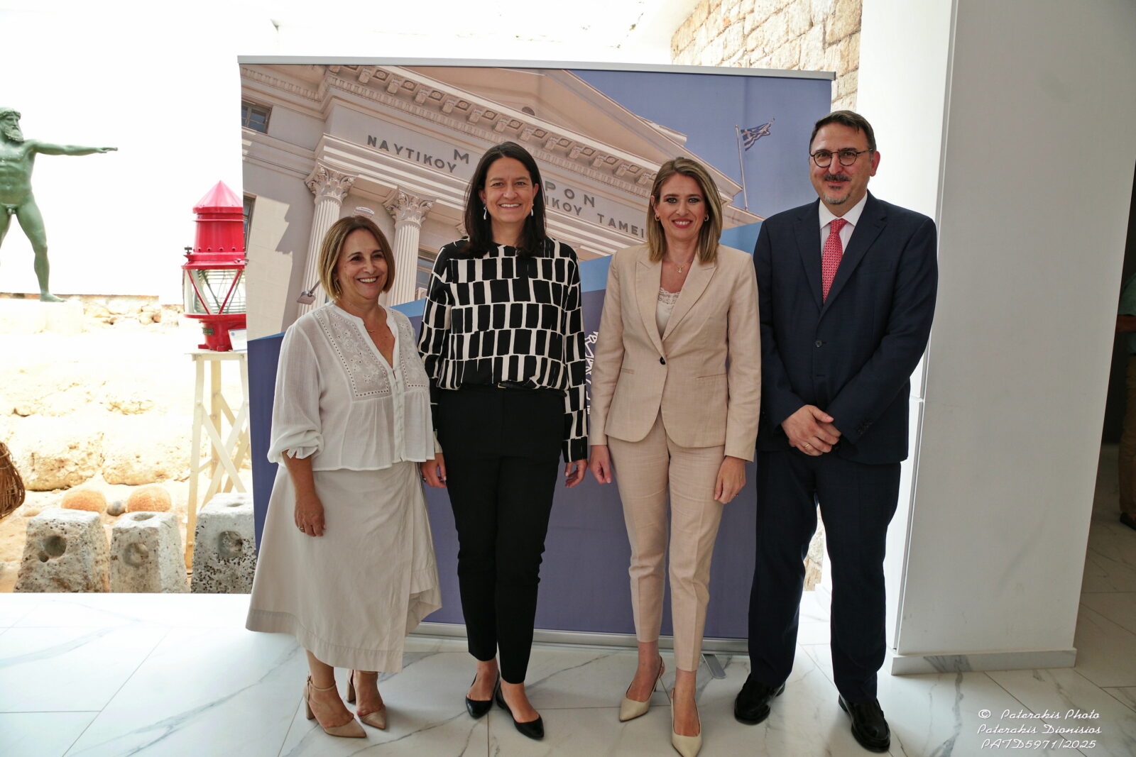 Από αριστερά: Αναστασία Αναγνωστοπούλου-Παλούμπη πρόεδρος Ναυτικού Μουσείου Ελλάδος, Έλπη Πετράκη Πρόεδρος WISTA INTERNATIONAL, Κωνσταντίνος Τσαγκαρόπουλος Γεν Γραμματέας Κοινωνικών Ασφαλίσεων, Γεωργία Μανιάτη Διοικήτρια ΝΑΤ
