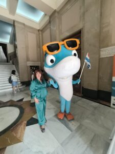 Κλαίρη Παπά ιστολόγιο Piraeus365.gr  και η μασκώτ του Δήμου Πειραιά για τις ΗΜΕΡΕΣ ΘΑΛΑΣΣΑΣ , ο Ζαχαρίας.
