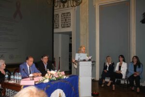 Οι ομιλίες έκλεισαν με την συγκλονιστική προσωπική μαρτυρία της Νάνας Τσαπέλα που έχει νοσήσει με καρκίνο του μαστού, κάνοντας αναφορά σε όλη την πορεία από την διάγνωση μέχρι την θεραπεία της, αναδεικνύοντας την σημασία της έγκαιρης και έγκυρης διάγνωσης! Σήμερα είναι καλά στην υγεία της και είναι εκπαιδευμένη εθελόντρια του «ΑΛΜΑ ΖΩΗΣ», προσφέροντας με αυτόν τον τρόπο φροντίδα και αγάπη σε γυναίκες που δοκιμάζονται από τη νόσο!