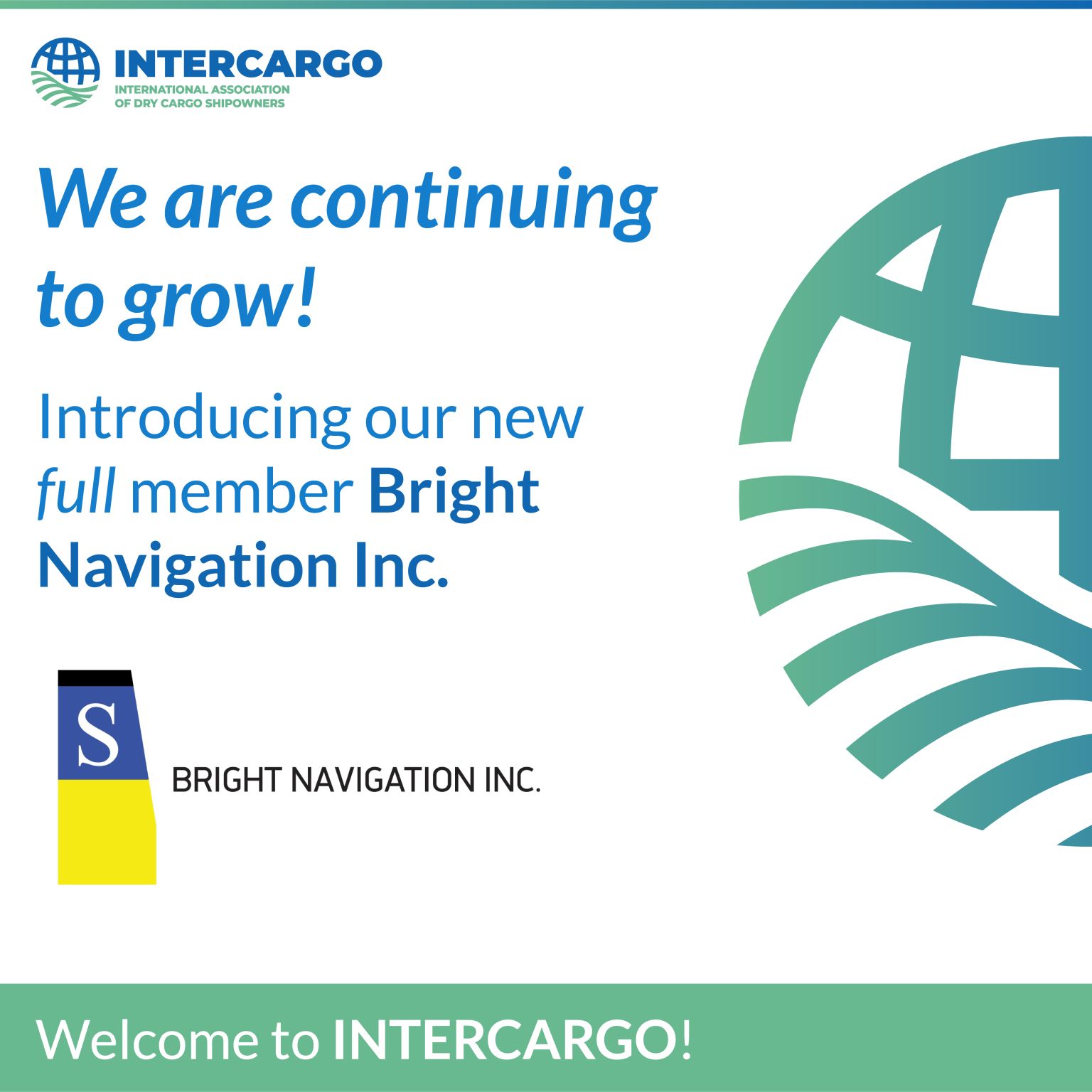 We are pleased to welcome Bright Navigation Inc. as a Full Member of INTERCARGO.