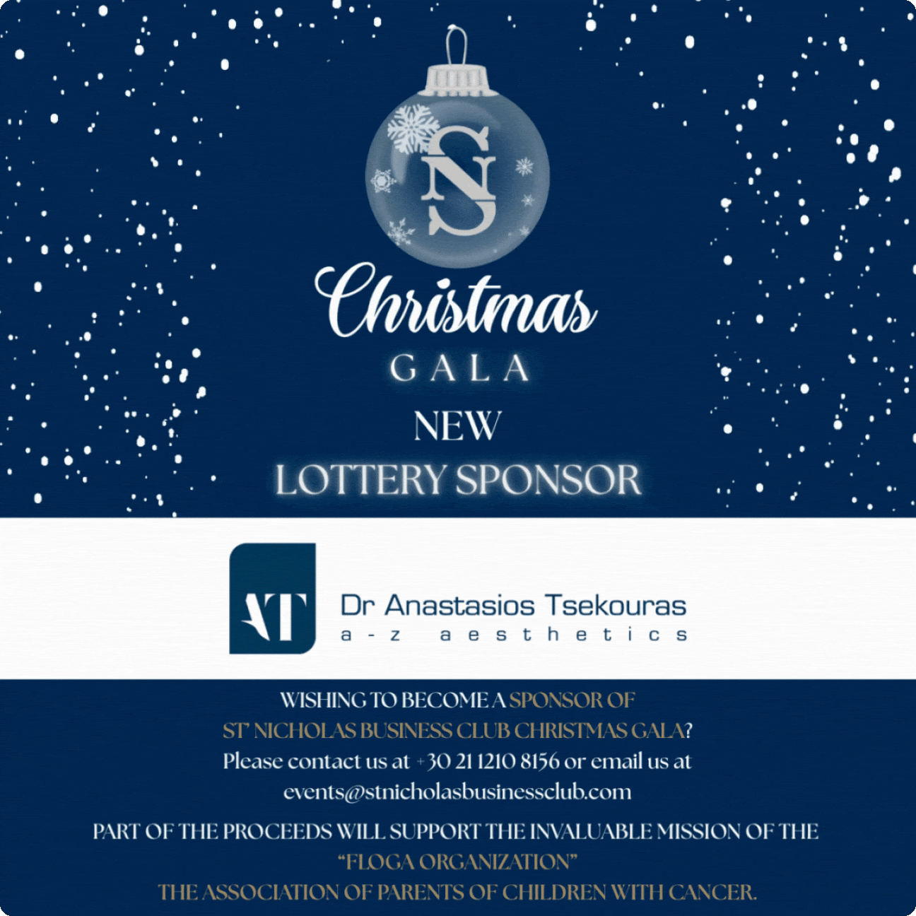 We are delighted to announce our new Lottery Sponsor of the «Christmas Gala», DR. ANASTASIOS TSEKOURAS A-Z Aesthetics, represented by our esteemed member of our Club Dr. Anastasios Tsekouras.