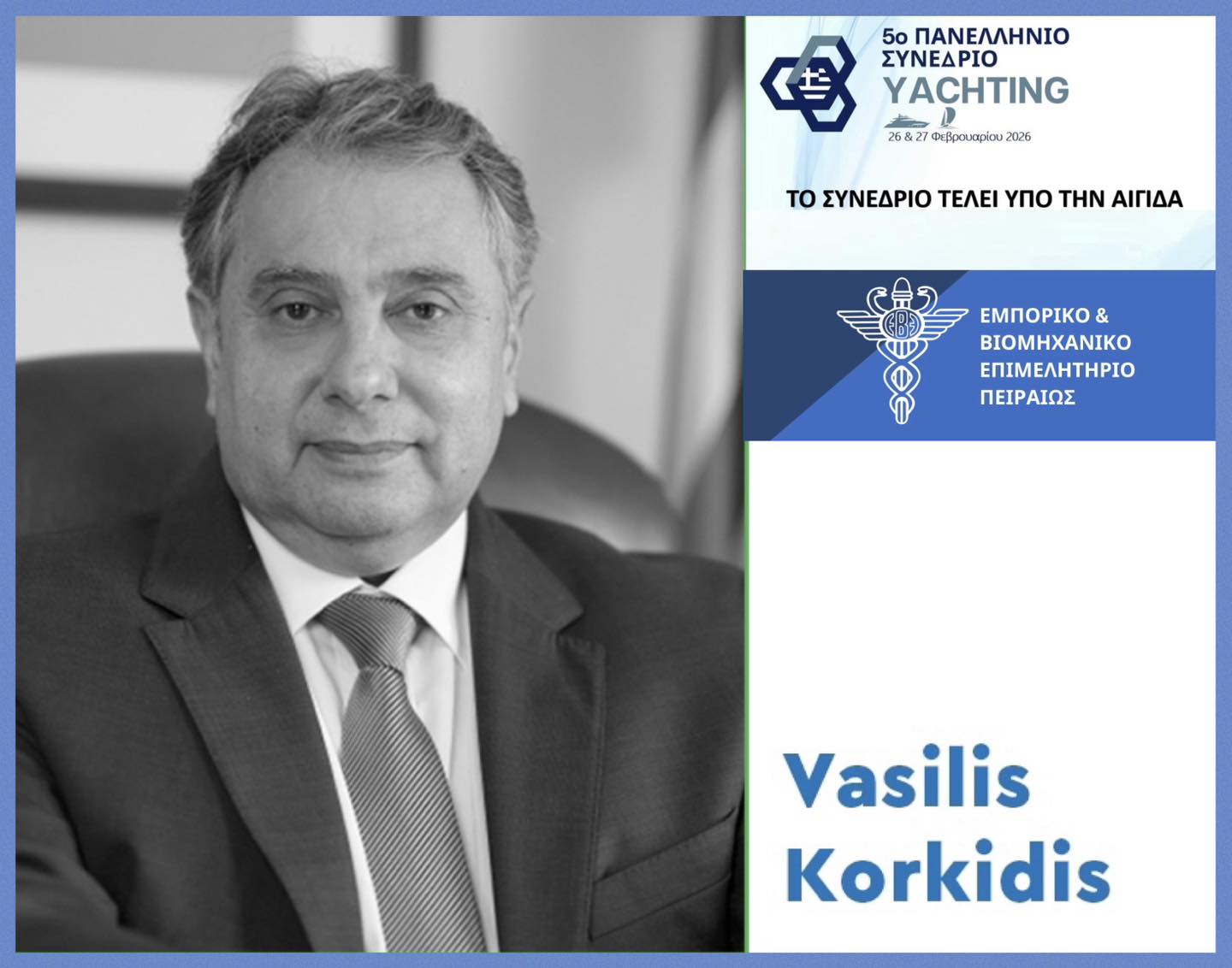 Το Ε.Β.Ε.Π. θα συνεχίσει να στέκεται αρωγό σε κάθε προσπάθεια που στοχεύει στην ανάπτυξη του τομέα του yachting, καθώς πιστεύουμε ακράδαντα ότι στην Ελλάδα διαθέτει λαμπρό μέλλον στο θαλάσσιο τουρισμό. Στη χώρα μας, η θάλασσα ανέκαθεν γεννούσε ελπίδα και όνειρα. Οφείλουμε, λοιπόν, να μετατρέψουμε το όνειρο σε πραγματικότητα, γιατί η Ελλάδα μπορεί, χωρίς να αδικεί τις ελληνικές επιχειρήσεις και τις εγχώριες επενδύσεις, να καταστεί παγκοσμίως το νέο Yachting Home Port.