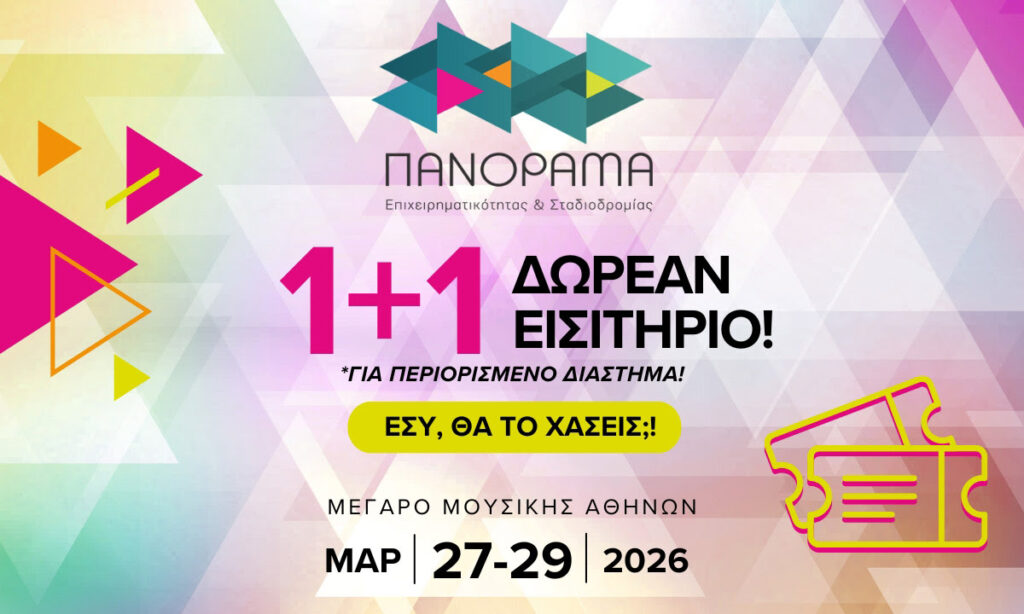Το 1+1 για το Πανόραμα 2026 τελειώνει! Μην το χάσεις! 27-29 Μαρτίου! Τελευταίες μέρες για το 1+1 εισιτήριο! Αν το σκέφτεσαι ακόμα, τώρα είναι η στιγμή. Το 1+1 για το Πανόραμα Επιχειρηματικότητας & Σταδιοδρομίας 2026 είναι διαθέσιμο μόνο για λίγες μέρες ακόμα. ΑΓΟΡΑΣΕ ΤΟ 1+1 ΕΙΣΙΤΗΡΙΟΤο Πανόραμα στα Social Media LinkedIn – Instagram … Συνεχίστε να διαβάζετε το Πανόραμα Επιχειρηματικότητας & Σταδιοδρομίας 2026.