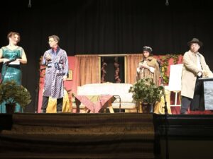 ρουτίνας και να ανακαλύψει τα μυστικά πίσω από την αυλαία. Η φετινή επιλογή μας είναι το έργο Black Out του Jack Sharkey, ένα γρήγορο, αστείο έργο με μυστήριο, που μας κέρδισε από την πρώτη ανάγνωση. Η διανομή των ρόλων έγινε αυθόρμητα, σαν να βρήκε ο κάθε χαρακτήρας, τον φυσικό του εκφραστή. Ο δικός μου ρόλος, η Άλμα Θρηντλ, βοηθός του επιθεωρητή Μπέντζαμιν Μπράντοκ, με γοήτευσε από την πρώτη στιγμή λόγω του χιούμορ και της εξυπνάδας της, δίνοντας ρυθμό και ενέργεια στην εξέλιξη της ιστορίας».