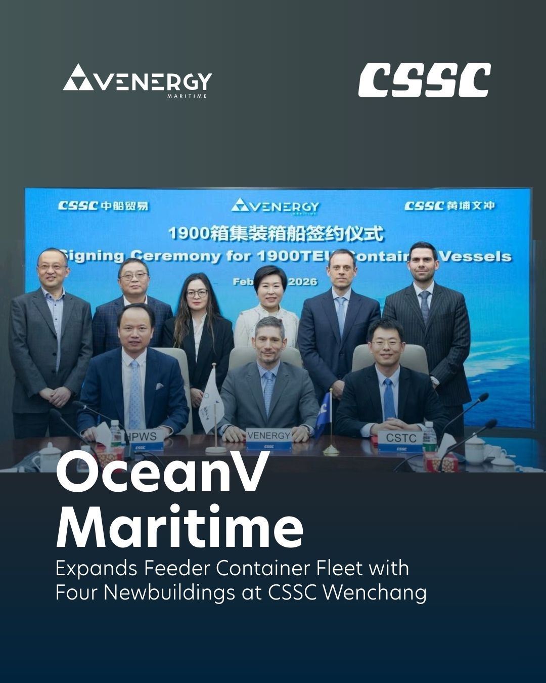 OceanV Maritime has signed contracts for 𝘁𝘄𝗼 𝗻𝗲𝘄𝗯𝘂𝗶𝗹𝗱𝗶𝗻𝗴 𝟭,𝟵𝟬𝟬 𝘁𝗲𝘂 𝗳𝗲𝗲𝗱𝗲𝗿 𝗰𝗼𝗻𝘁𝗮𝗶𝗻𝗲𝗿 𝘃𝗲𝘀𝘀𝗲𝗹𝘀, together with the entry into force of 𝘁𝘄𝗼 𝗮𝗱𝗱𝗶𝘁𝗶𝗼𝗻𝗮𝗹 𝘂𝗻𝗶𝘁𝘀, at 𝗖𝗦𝗦𝗖 𝗪𝗲𝗻𝗰𝗵𝗮𝗻𝗴 𝗦𝗵𝗶𝗽𝗯𝘂𝗶𝗹𝗱𝗶𝗻𝗴, marking an important milestone in the expansion of its feeder platform.