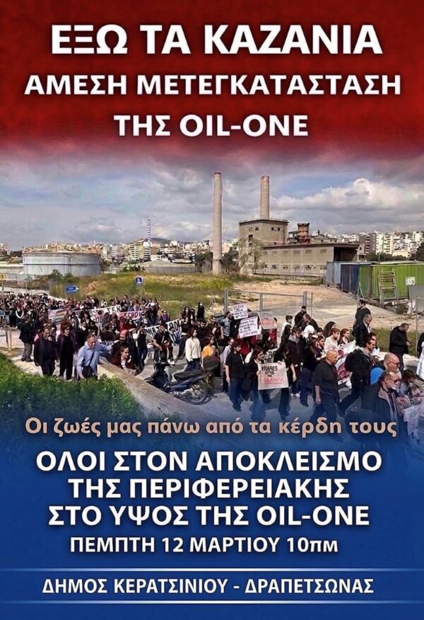 By piraeus365Ο Δήμος Κερατσινίου – Δραπετσώνας στο πλαίσιο των αποφάσεων του για τις δράσεις-κινητοποιήσεις για την άμεση απομάκρυνση των εγκαταστάσεων της Oil-one από την πόλη μας, προχωρά στον συμβολικό...