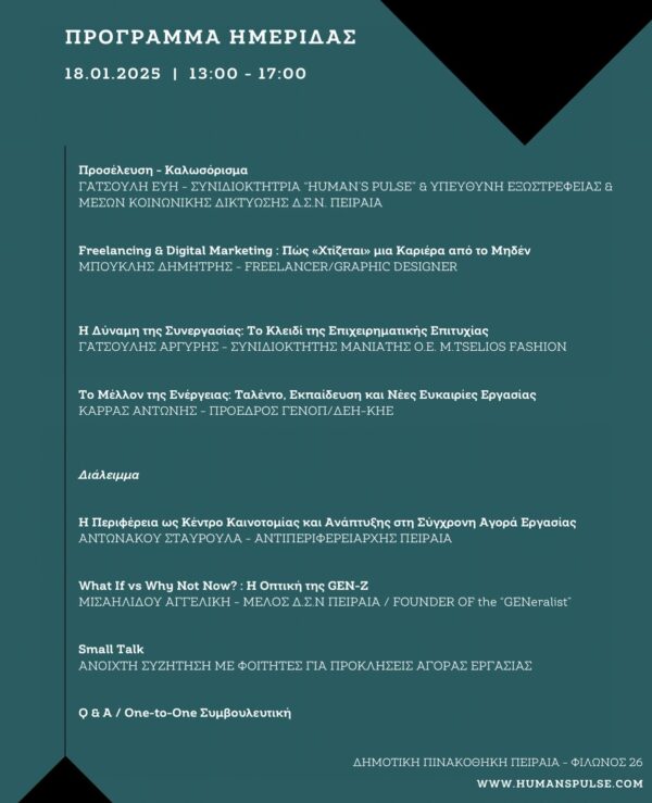 By piraeus365«Ημέρα Καριέρας» από το Δημοτικό Συμβούλιο Νέων Δήμου Πειραιά στη Δημοτική Πινακοθήκη Career Day στον Πειραιά – Ένα βήμα για το επαγγελματικό σας...