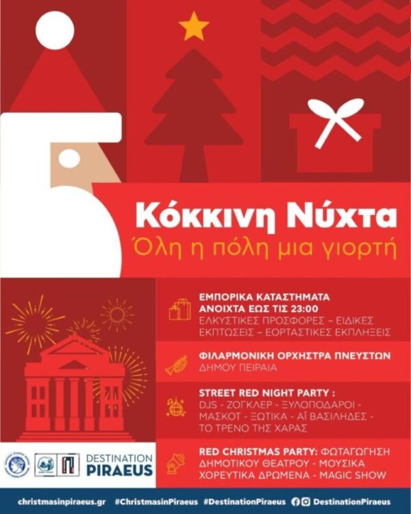 By piraeus365Ο Πειραιάς φορά τα γιορτινά του και σας προσκαλεί στη «Κόκκινη Νύχτα», μια μοναδική Χριστουγεννιάτικη γιορτή που θα γεμίσει την πόλη με φως,...