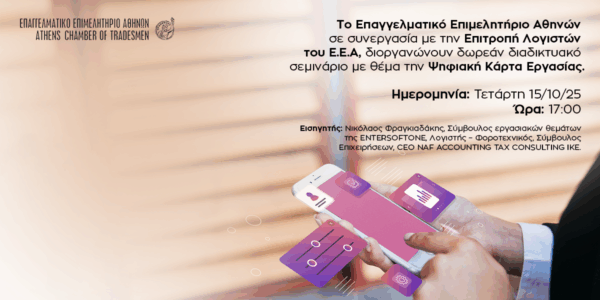 Με γνώμονα τη συνεχή επιμόρφωση και υποστήριξη των μελών του, το Επαγγελματικό Επιμελητήριο Αθηνών, σε συνεργασία με την Επιτροπή Λογιστών του Ε.Ε.Α., προχωρά στη διοργάνωση...