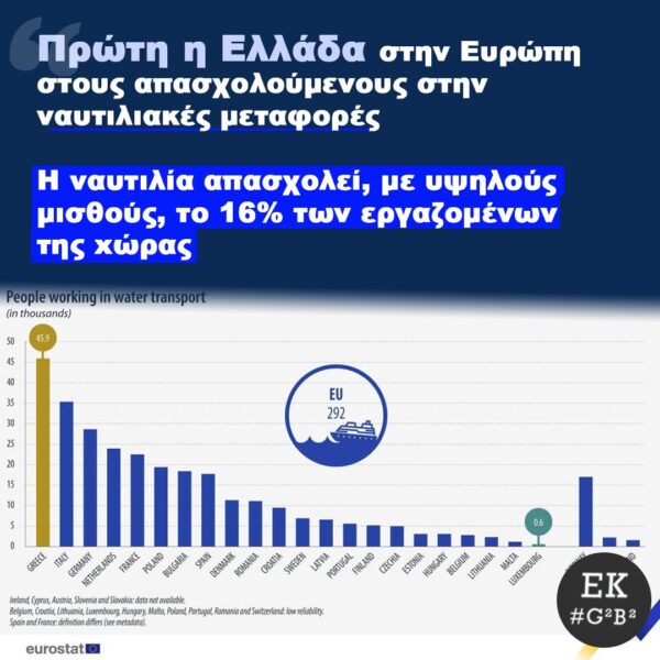By piraeus365Με μια άκρως ενδιαφέρουσα ανάρτησή της, η EUROSTAT μας ενημερώνει ότι οι θαλάσσιες μεταφορές στην Ελλάδα απασχολούν 45.900 εργαζόμενους, δηλ. το 16% του...