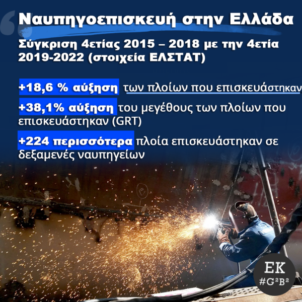 By piraeus365The Great Greek Big Blue – G2B2 Ναυπηγοεπισκευή στην Ελλάδα Σύγκριση 4ετίας 2015 – 2018 με την 4ετία 2019-2022 (στοιχεία ΕΛΣΤΑΤ) +18,6 %...