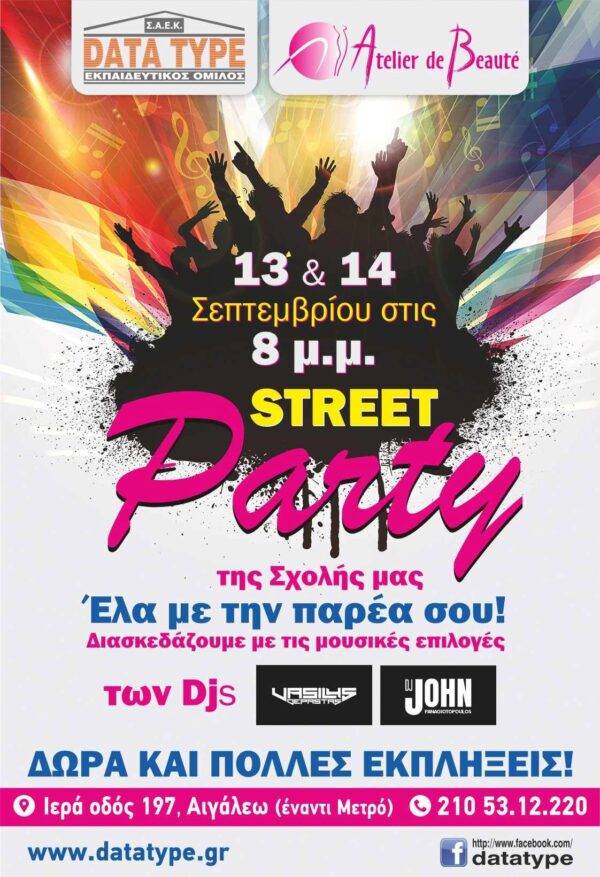 By piraeus365Ο ΕΚΠΑΙΔΕΥΤΙΚΟΣ ΟΜΙΛΟΣ DATA TYPE AEE, θα πραγματοποιήσει υπαίθριο πάρτυ (Street party), της Σχολής στις 13 και 14 Σεπτεμβρίου 2024. Είστε όλοι καλεσμένοι,...