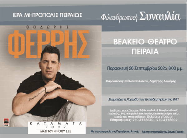 By piraeus365Η Ι. Μητρόπολη Πειραιώς διοργανώνει, για μία ακόμη χρονιά, μεγάλη φιλανθρωπική συναυλία, την Παρασκευή 26 Σεπτεμβρίου 2025, στις 20:00, στο εμβληματικό Βεάκειο Θέατρο...