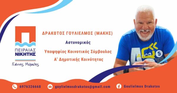 By piraeus365Ο κ.Γουλιέλμος (Μάκης) Δρακωτός είναι υποψήφιος Διαμερισματικός Σύμβουλος, ας δούμε το βιογραφικό του: ΔΡΑΚΩΤΟΣ ΓΟΥΛΙΕΛΜΟΣ (ΜΑΚΗΣ) Υποψήφιος Διαμερισματικός Σύμβουλος στο Α΄ Διαμέρισμα...