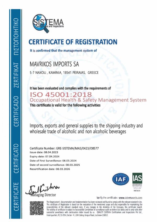 By piraeus365ΕΙΣΑΓΩΓΑΙ ΜΑΥΡΙΚΟΣ ΑΕ: Σας ανακοινώνουμε ότι η εταιρεία μας πιστοποιήθηκε και με το ISO 45001 2018 (Occupational Health & Safety Management System) !!!...