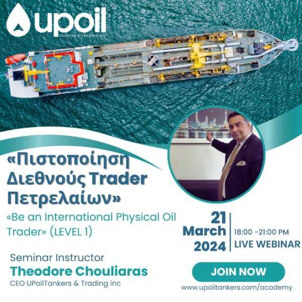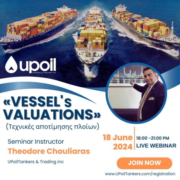 Η UPoilTankers & Trading διοργανώνει την Πέμπτη 24.04.2025 και ώρες 18:00 με 21:00, WEΒINAR επαγγελματικής πιστοποίησης , διάρκειας 3 ωρών με θέμα: VESSELS...
