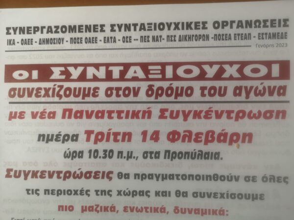 By piraeus365Συμμετέχει και η Πανελλήνια Ένωση Συνταξιούχων Εκπαιδευτικών. Να δοθούν αυξήσεις σε όλους τους συνταξιούχους. Ενσωμάτωση της προσωπικής διαφοράς στην κύρια σύνταξη. Επαναφορά της...