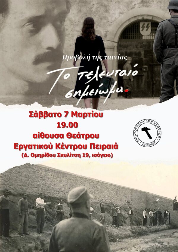 Το Εργατικό Κέντρο Πειραιά καλεί τα σωματεία μέλη του, τους εργαζόμενους στον δημόσιο και ιδιωτικό τομέα, το λαό και τη νεολαία του Πειραιά,...