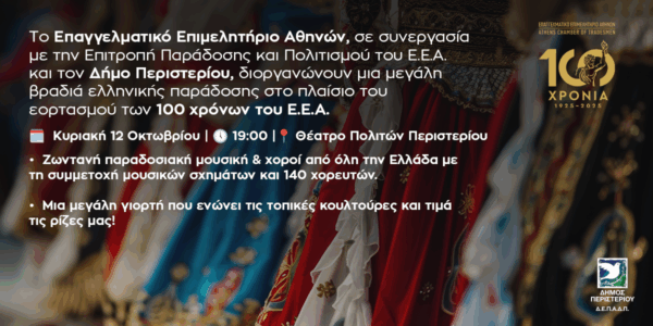 By piraeus365Το Ε.Ε.Α. τιμά τα 100 χρόνια του με μια βραδιά ελληνικής παράδοσης – Κυριακή 12/10, στις 19:00, στο Περιστέρι Στο πλαίσιο του...