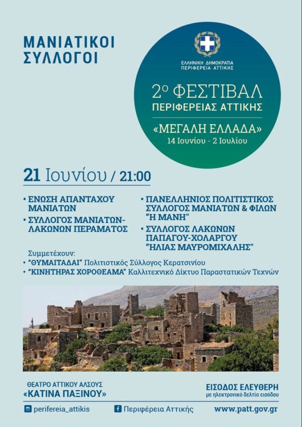 Η Ένωση Απανταχού Μανιατών “Η ΜΑΝΗ” διοργανώνει το 2 Φεστιβάλ Ευεξίας και Άθλησης, και προσκαλεί: Οι αθλητικοί σύλλογοι που θέλουν να συμμετέχουν μπορούν...