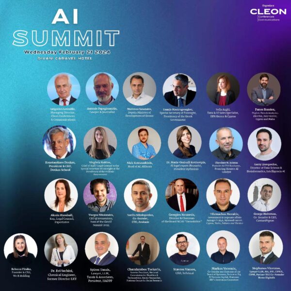 23 ομιλητές ειδικοί στην Τεχνητή Νοημοσύνη στο συνέδριο της Cleon Conferences & Communications H CLEON Conferences&Communications διοργανώνει το ΑΙ SUMMIT, υπό την αιγίδα ...