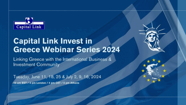 By piraeus365Dear partners, We are very happy to announce the launching of the Capital Link Invest in Greece Webinar Series 2024, aiming to update...